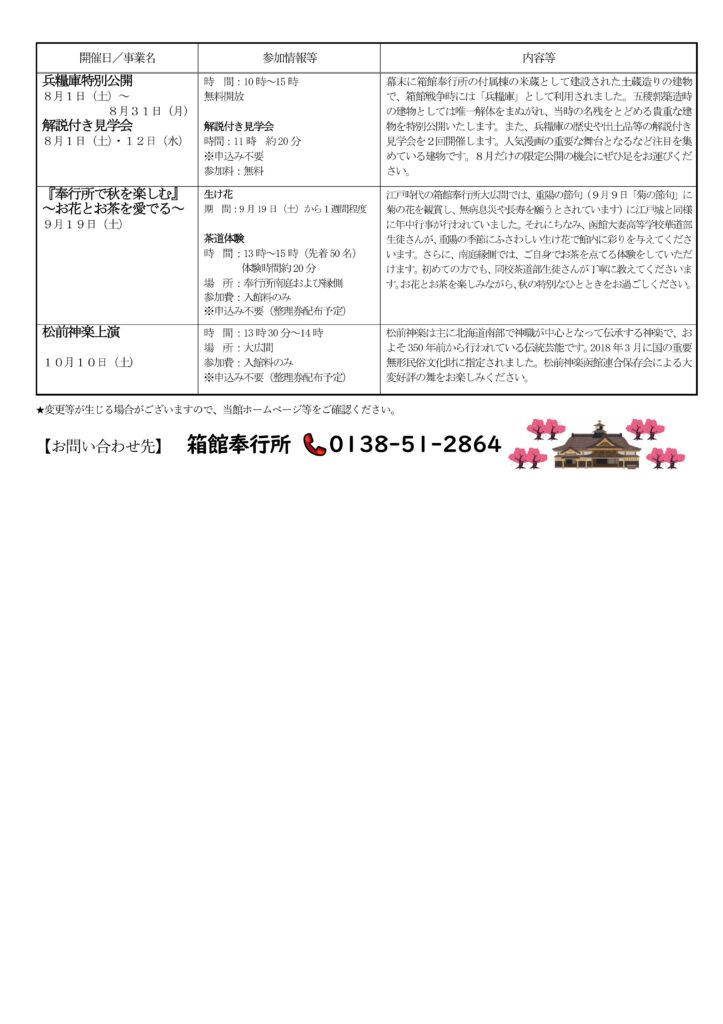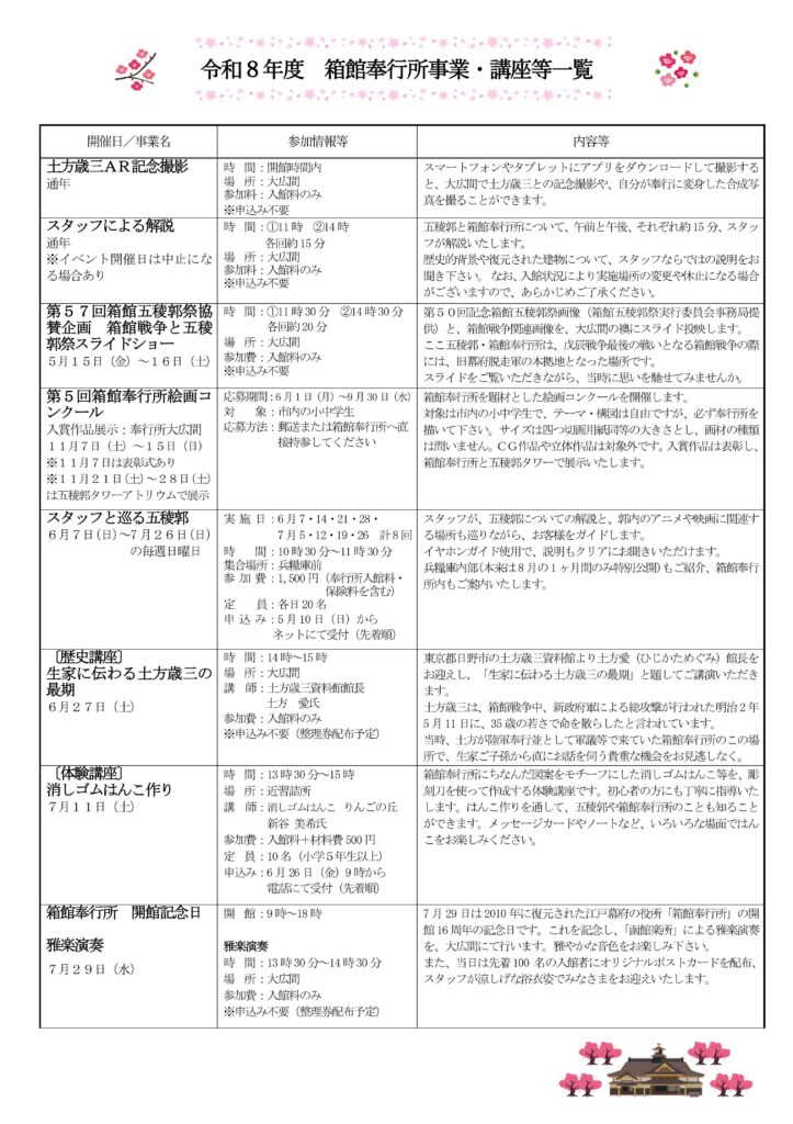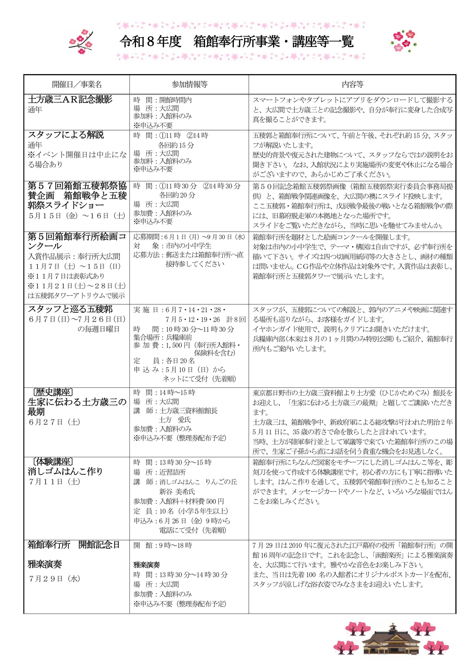 お待たせいたしました。令和8年度、箱館奉行所で開催予定の事業・講座一覧を公開いたします。