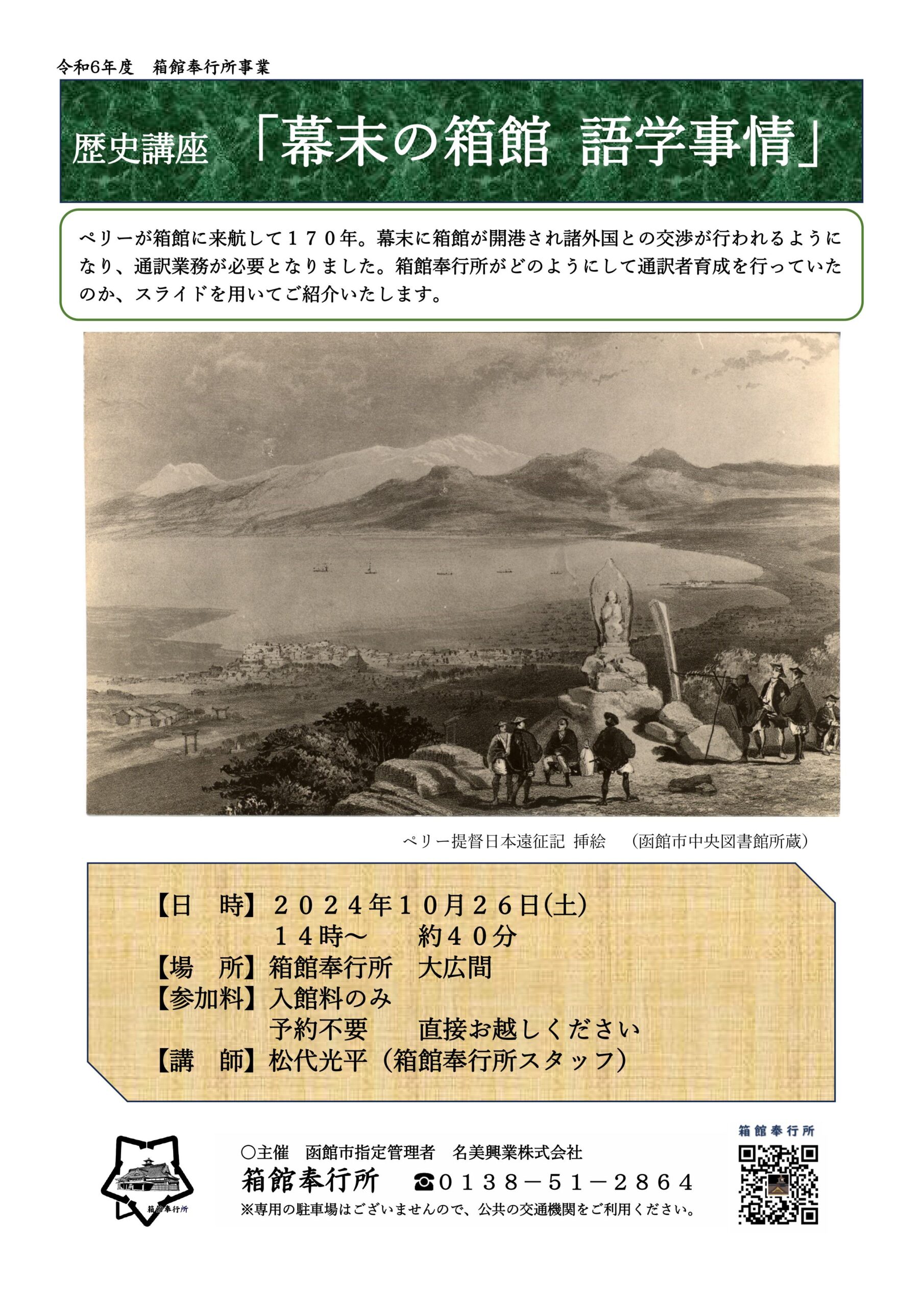 歴史講座「幕末の箱館 語学事情」開催のお知らせ