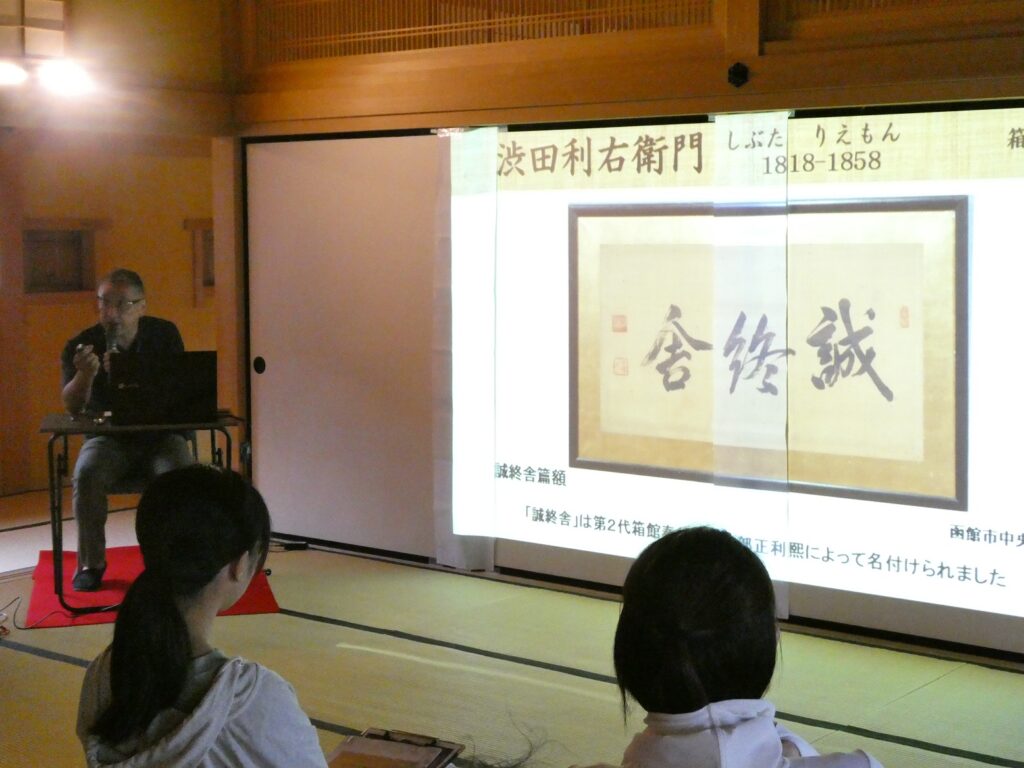 9月20日(土)14:00~大広間におきまして、スタッフによる歴史講座「渋田利右衛門と勝海舟」を開催いたしました。