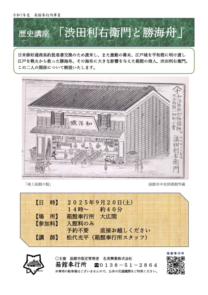 歴史講座「渋田利右衛門と勝海舟」と勝海舟直筆の掛軸展示のお知らせ
