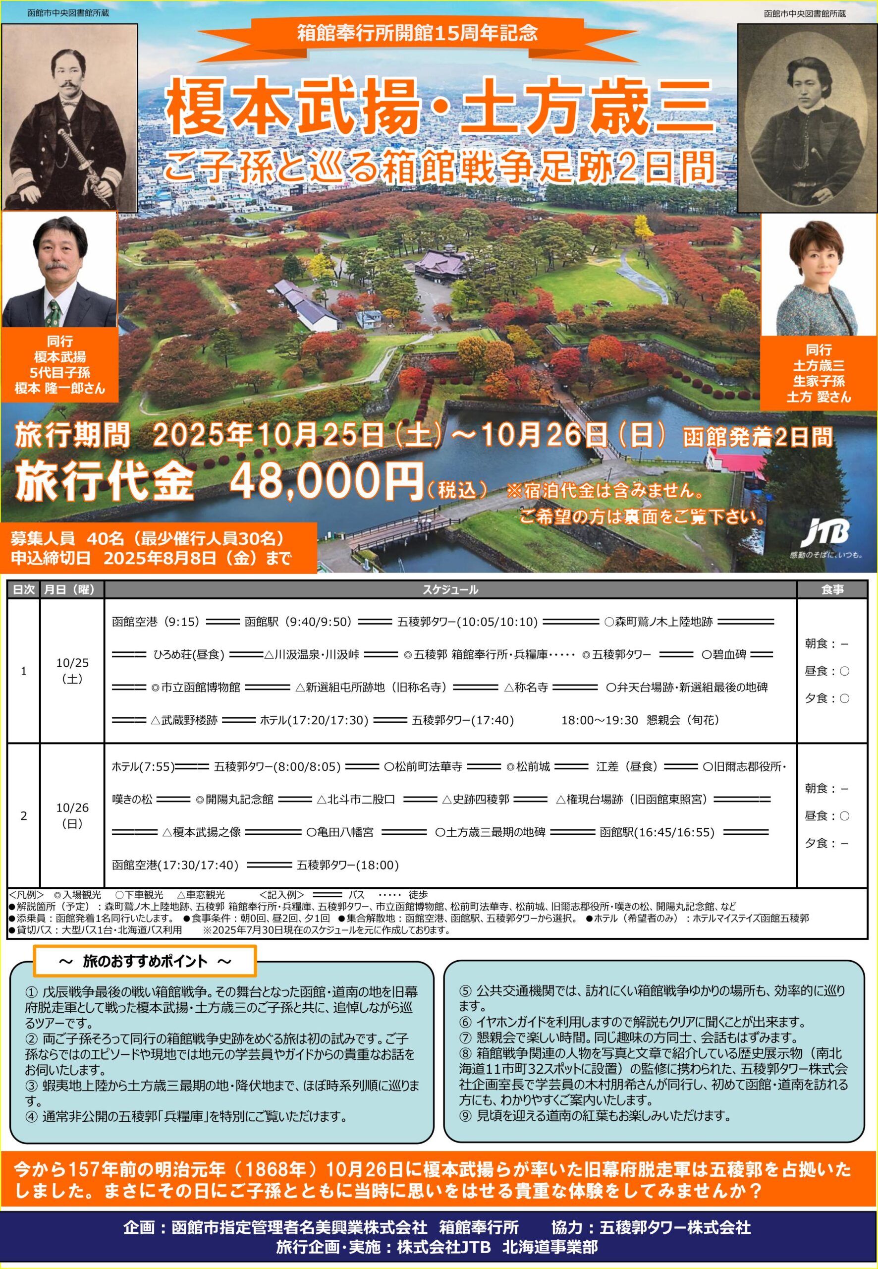 そして、その記念事業の一つ、『箱館奉行所開館15周年記念 榎本武揚・土方歳三 ご子孫と巡る箱館戦争足跡2日間』の詳細が決定いたしました!