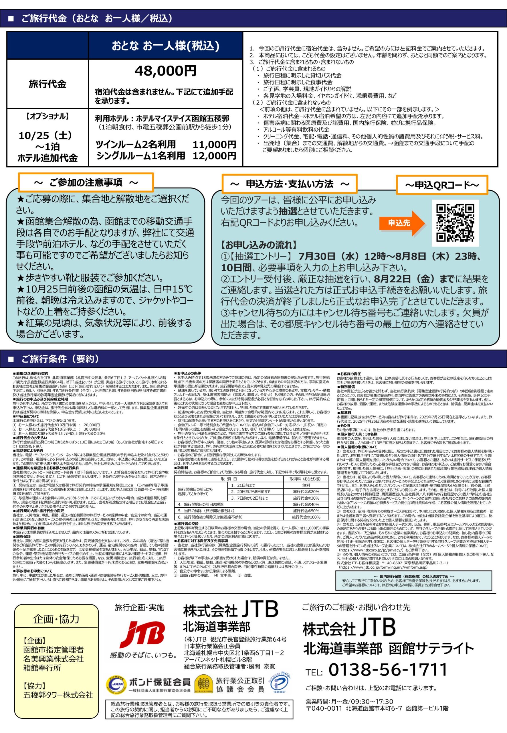 旅行を実施していただくJTB様作成の下記パンフレットをご覧ください。