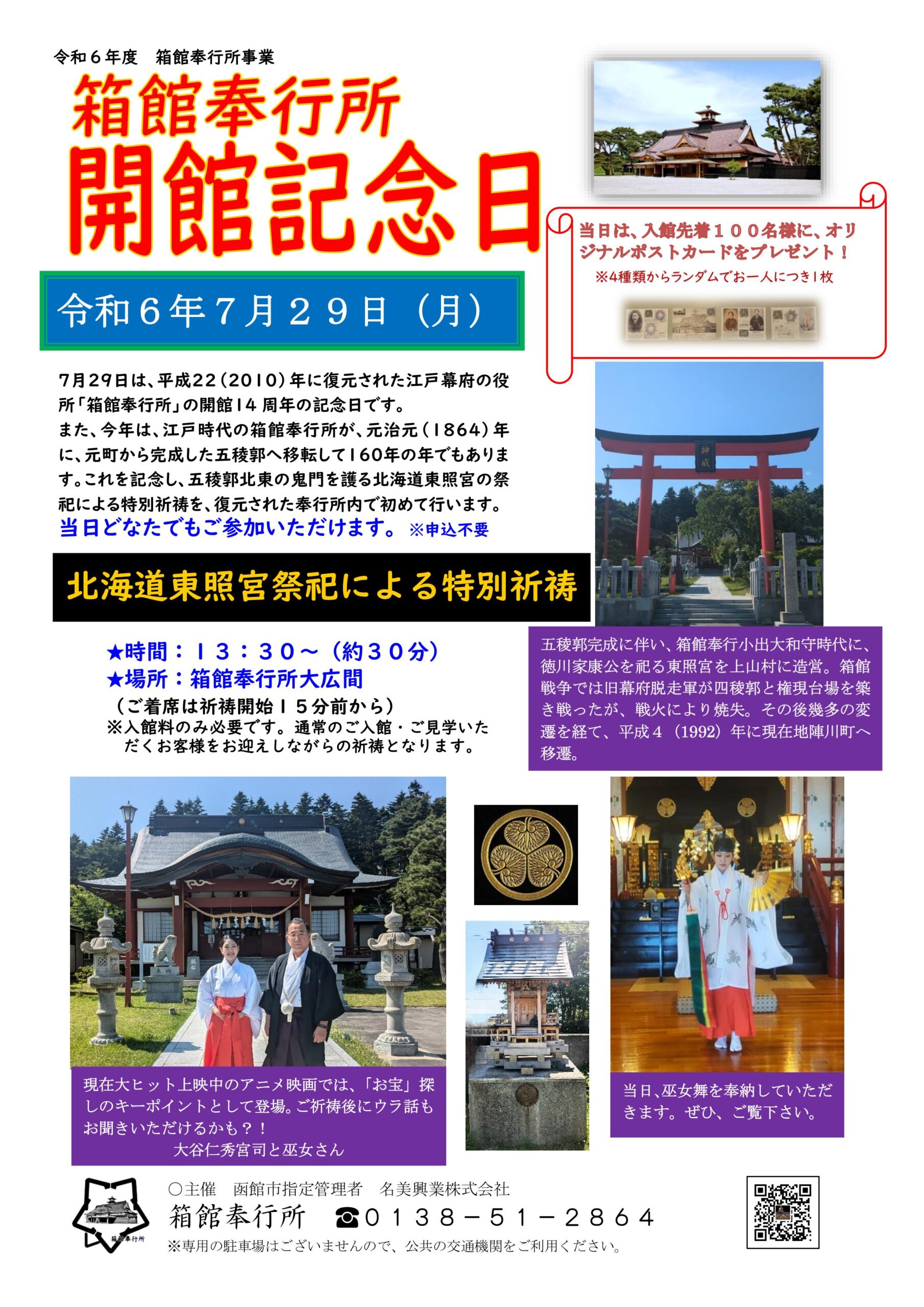 7月29日(月)箱館奉行所 開館記念日のお知らせ
