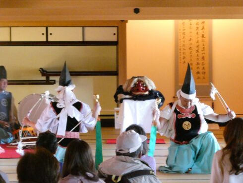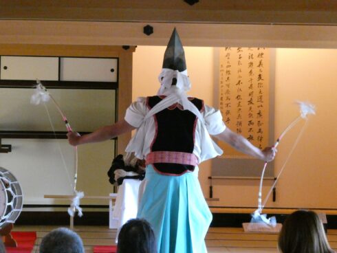 10月4日(土)13:30~大広間にて、国の重要無形民俗文化財の「松前神楽」を上演いたしました。