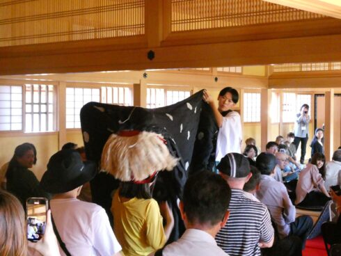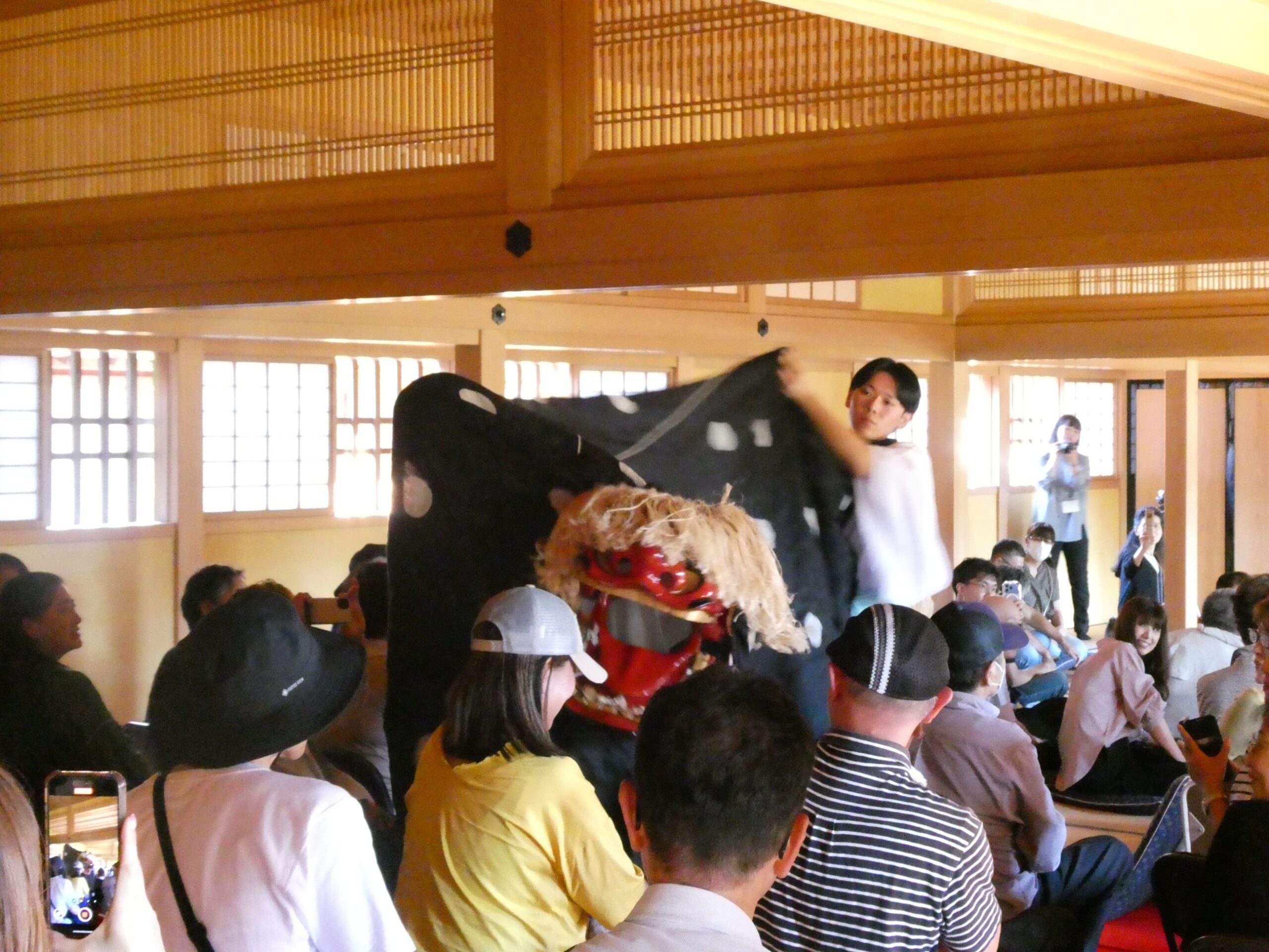 特に獅子舞は観客席を回り、一人一人の頭を噛んでいくのですが、観客を驚かせるような動きや「ガブッ」と頭に噛みつく様子に、会場は笑い声にも包まれました。