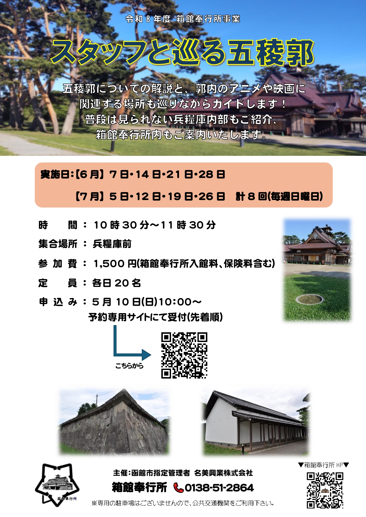 令和8年度 箱館奉行所事業「スタッフと巡る五稜郭」のご案内です。