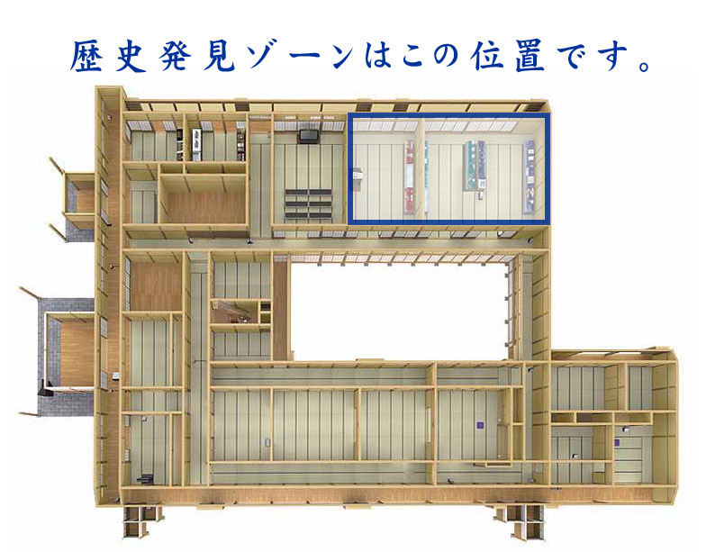 室内の説明パネルでは、箱館奉行所の歴史や役割、箱館戦争の推移、五稜郭の築造の経緯と構造など、五稜郭と箱館奉行所に関する情報をわかりやすく展示・陳列しています。世界中に分布する五稜郭をグーグルマップを使って紹介するコーナー、多数の函館の歴史上の人物紹介にも面白い仕掛けがあって楽しめます。また、天井の一部が開放されていて建物を支える巨大な梁を観察することができます。